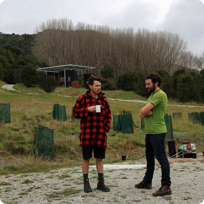 Philip Smith (landscape designer) and Malcolm Rutherford (QEII) chat as planting of the 1769 Seed Archive gets under way in early June.