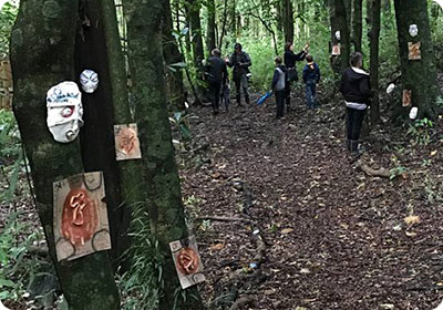 Pete and Elle Jarratt work their magic with kids, art and the bush. A great art exhibition in Longbush Reserve!
