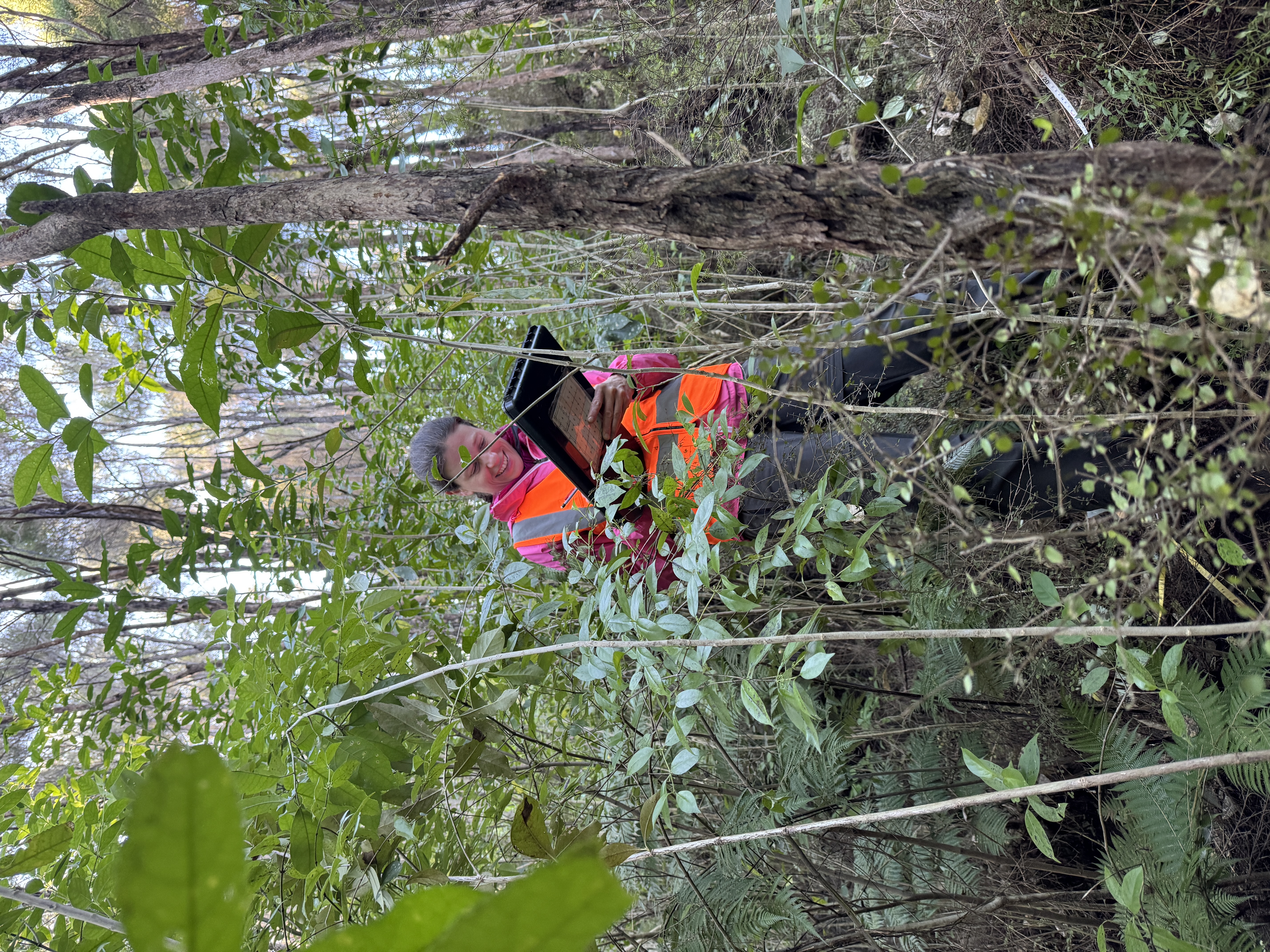 Waikereru was a hub of scientific activity last week, with visits by Janet Wilmhurst, palaeoecologist from Manaaki Whenua, who managed to get a fantastic 7m pollen core (hopefully showing c. 5000 years of plant life) further up the valley on Laura Watson’s farm for our ‘Let the River Speak’ project; and a team of three plant ecologists led by Jennifer Bufford who measured dated growth plots (24, 20, 15, 10 and 5 years old) at Waikereru as a basis for potential look-up tables for native forests.