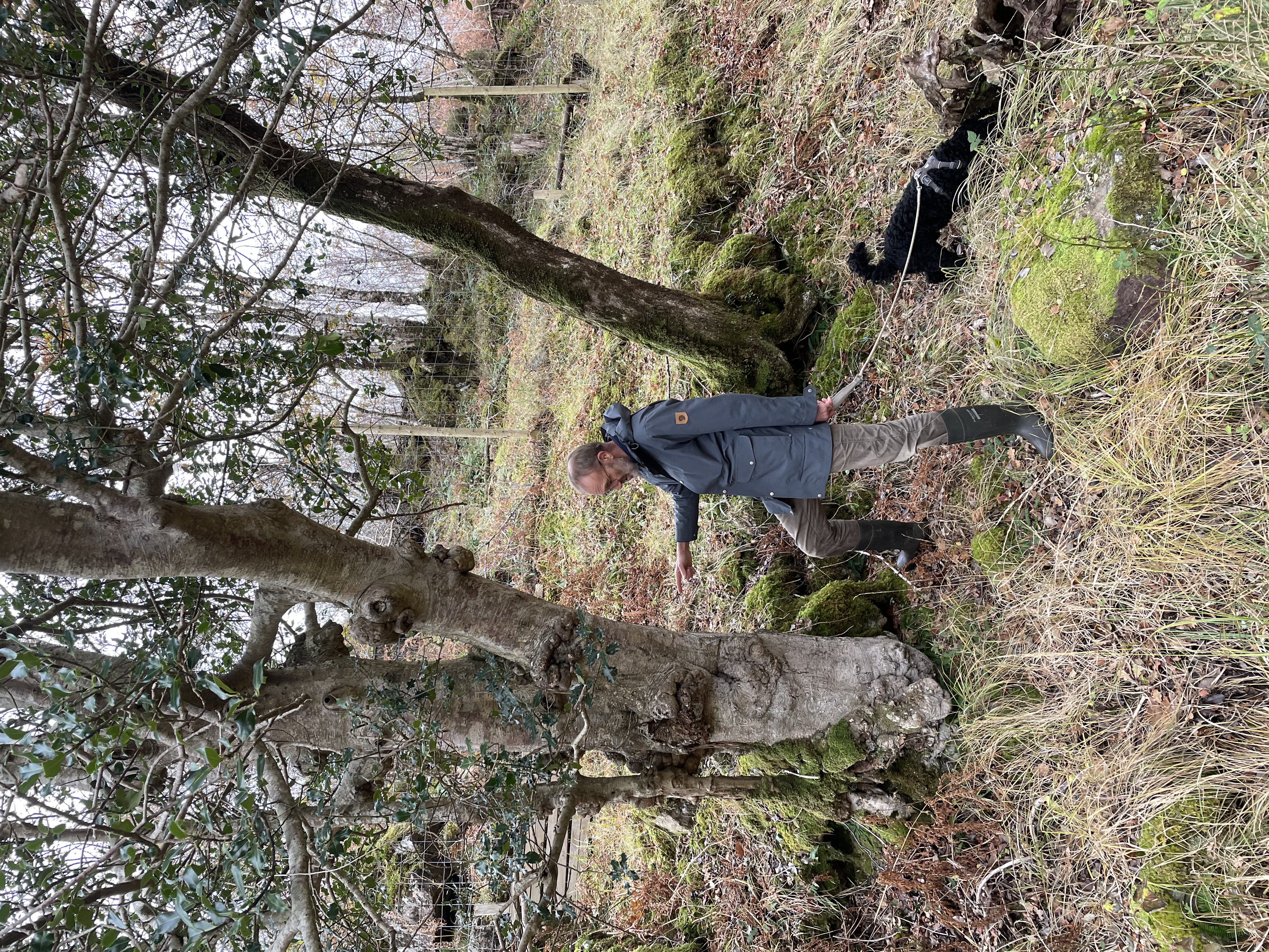 Fabulous visit to a temperate rainforest restoration project on the island of Mull in west Scotland. This Holly tree dates back to 1730 in an ancient oak and holly woodland, largely cleared for Sitka pine trees after WWII. Moray Finch, recently retired Director of the project, told us how how dendrochronology was used to date it.