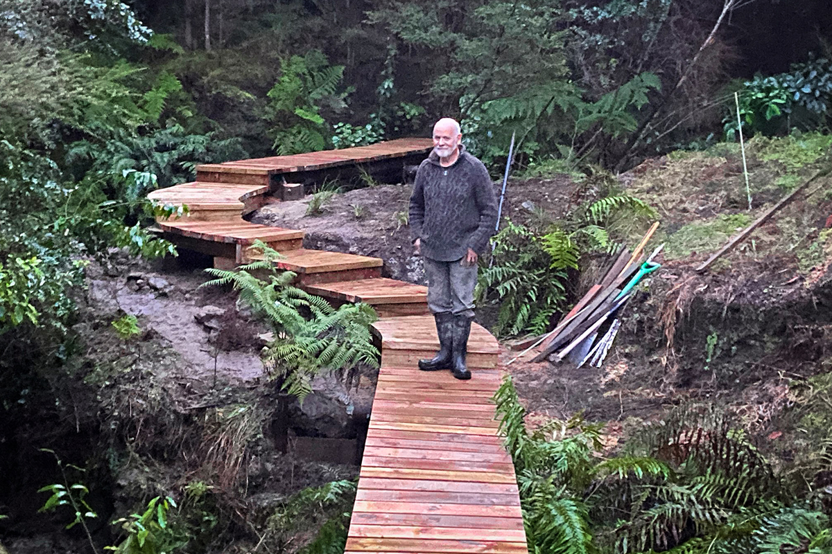 Waitui Walkway - our second lockdown project, with the proud bridge builder. Once the weeds were cleared away we discovered this beautiful little ampitheatre, with the Waitui stream winding through it.